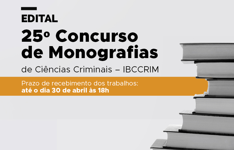 IBCCRIM abre edital para o 25º Concurso de Monografias de Ciências Criminais O IBCCRIM divulga nesta segunda-feira, dia 22, o edital para o tradicional concurso de monografias do Instituto. As inscrições são Leia mais » março 2021