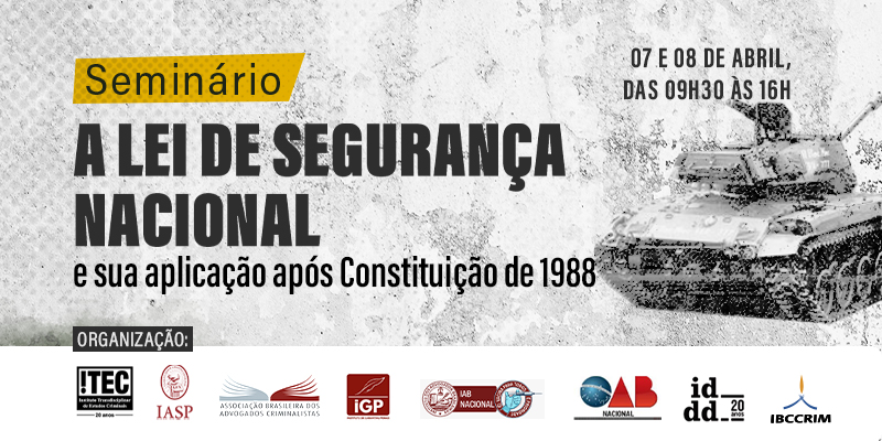 IBCCRIM e organizações parceiras promovem Seminário sobre a Lei de Segurança Nacional O Instituto Brasileiro de Ciências Criminais (IBCCRIM), em parceria com diversas organizações, realiza entre os dias 07 e 08 de Leia mais » abril 2021