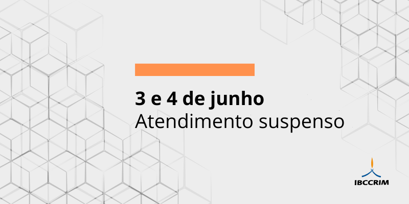 03/06: atendimento suspenso 3 de junho – Feriado nacional: Atendimento Suspenso⠀ Em razão do feriado nacional, o Instituto Brasileiro de Ciências Criminais (IBCCRIM) Leia mais » junho 2021