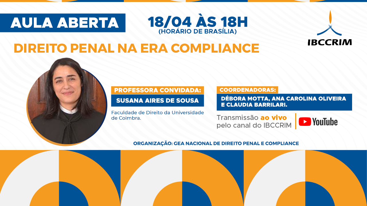 IBCCRIM promove a aula aberta “Direito Penal na Era do Compliance” com professora de Coimbra O IBCCRIM (Instituto Brasileiro de Ciências Criminais) promove, na próxima segunda-feira (18/4), às 18h, a aula aberta “Direito Penal na Leia mais » abril 2022