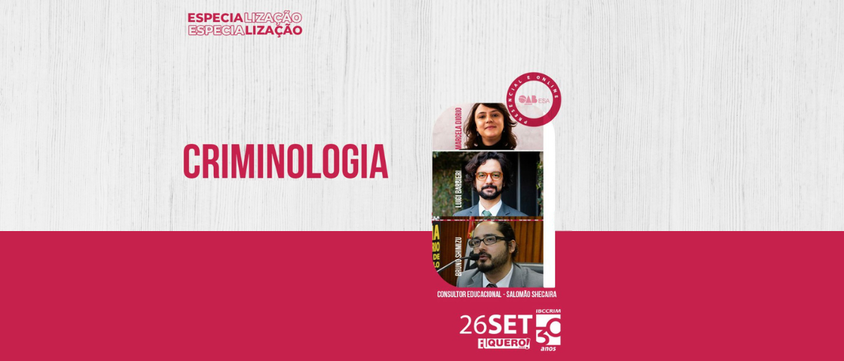 IBCCRIM e ESA lançam curso de especialização em Criminologia O Curso de Especialização em Criminologia, promovido pelo IBCCRIM e ESA OAB-SP tem início na próxima segunda-feira (26), conta com Leia mais » setembro 2022