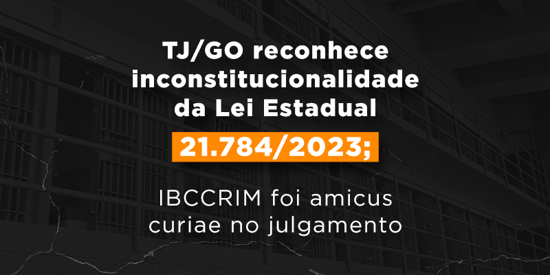 TJ/GO reconhece inconstitucionalidade da Lei Estadual 21.784/2023; IBCCRIM foi amicus curiae no julgamento No último dia 28 de junho, o Tribunal de Justiça de Goiás, por unanimidade, reconheceu inconstitucional a Lei Estadual n. Leia mais » junho 2023