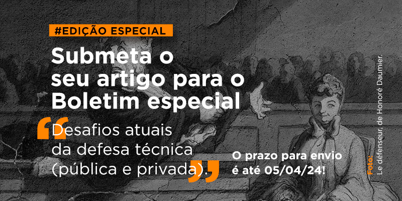Submeta o seu artigo para a edição especial do Boletim Em agosto de 2024, uma edição especial do nosso Boletim irá debater o direito de defesa. E você tem a Leia mais » setembro 2023