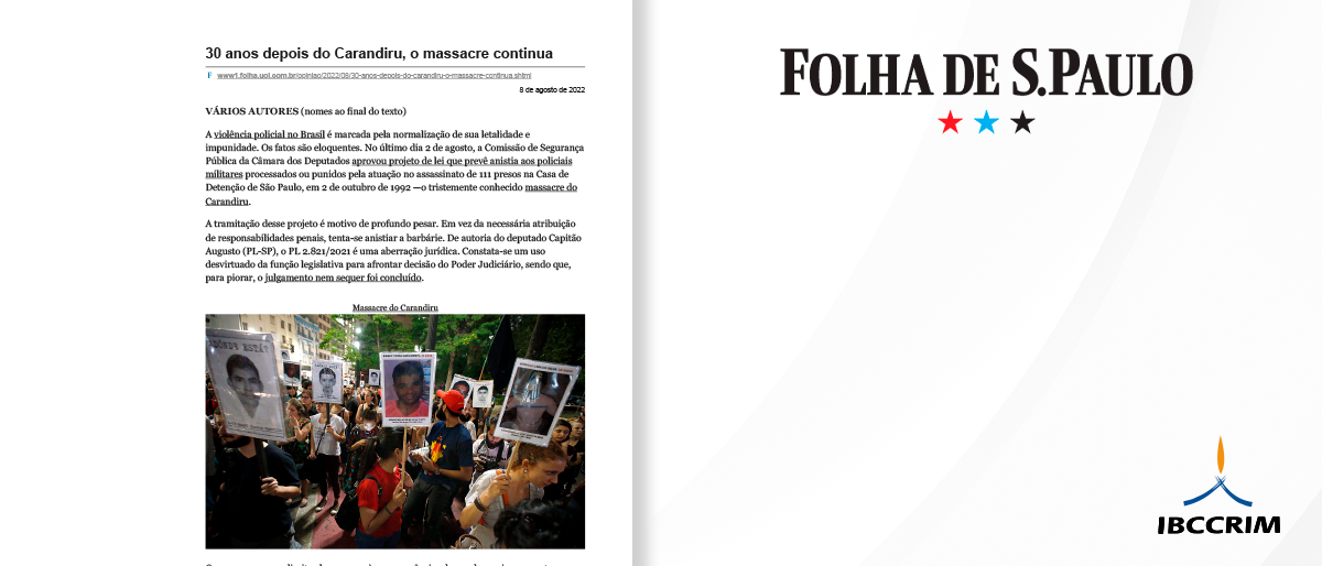 O Instituto Brasileiro de Ciências Criminais manifesta seu profundo respeito e solidariedade diante da nota de pesar assinada por Rodrigo Ghiringhelli de Azevedo e Jacqueline Sinhoretto — membros do Comitê