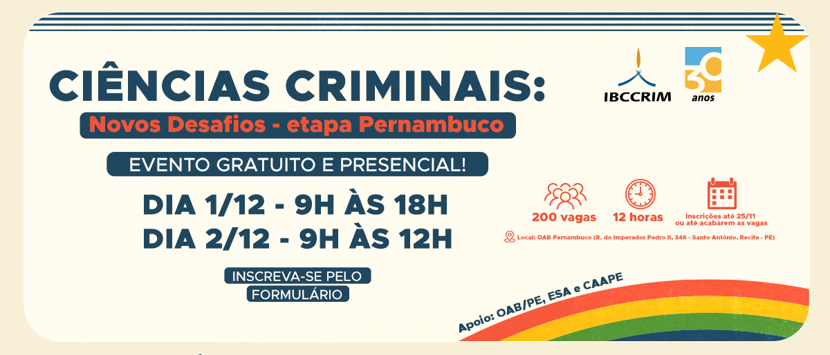 No dia 17 de setembro de 2025, o Instituto Brasileiro de Ciências Criminais (IBCCRIM) e o Supremo Tribunal Federal (STF) se unem em um evento histórico, na sede do STF,