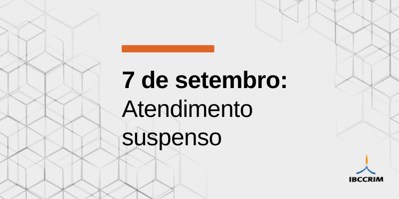 7 de setembro – Feriado Nacional: Atendimento suspenso Em razão do feriado nacional, o Instituto Brasileiro de Ciências Criminais (IBCCRIM) terá o atendimento suspenso nesta segunda-feira, dia 7 Leia mais » setembro 4, 2020